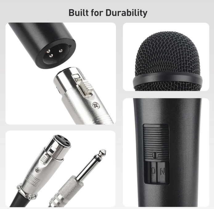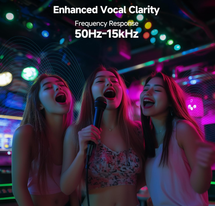 Clarté vocale améliorée : Conçu pour les performances vocales avec une réponse en fréquence de 50Hz-15kHz, ce microphone dynamique cardioïde pour karaoké met l'accent sur la clarté et la précision, ce qui le rend parfait pour le chant et le karaoké.