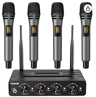 TONOR Micro Karaoke sans Fil avec 4x5 Canaux, UHF Microphone Systèmes Dynamique Portable à Main avec Récepteur, Portée de 60m, Signal Stable pour Le Chant, la Fête, l'église, Argent Mariage DJ