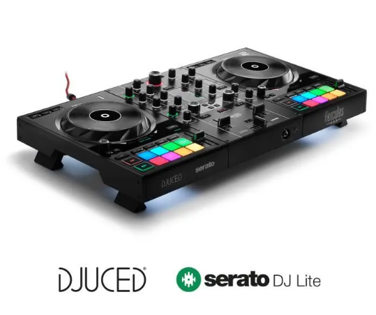 Contrôleur DJ USB 2 voies pour Serato DJ Lite et DJUCED (inclus) – Interface audio intégrée, 16 pads rétroéclairés en RGB, larges jogwheels, mixeur hardware intégré et pieds rétractables