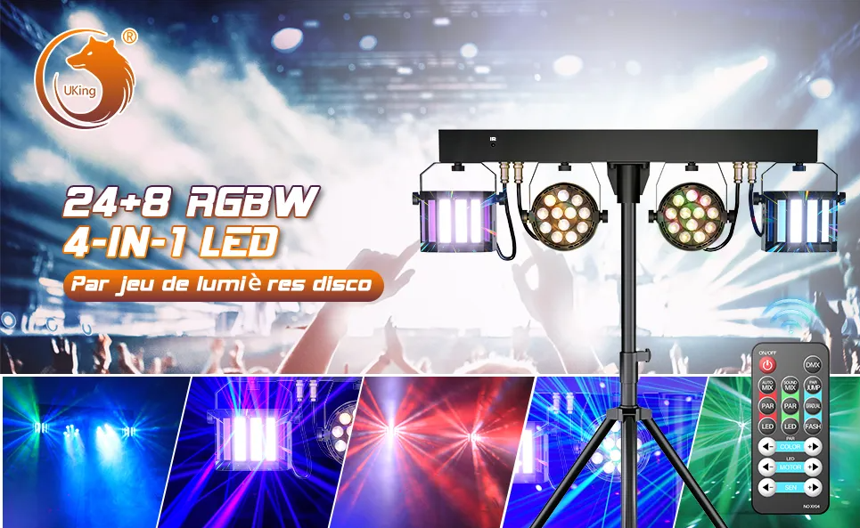 UKing Ensemble de 6 Jeux de Lumière Compacts et Puissants + 2 Machine à Fumée + Portique Lumière DJ Lumière de Scène pour Mariage