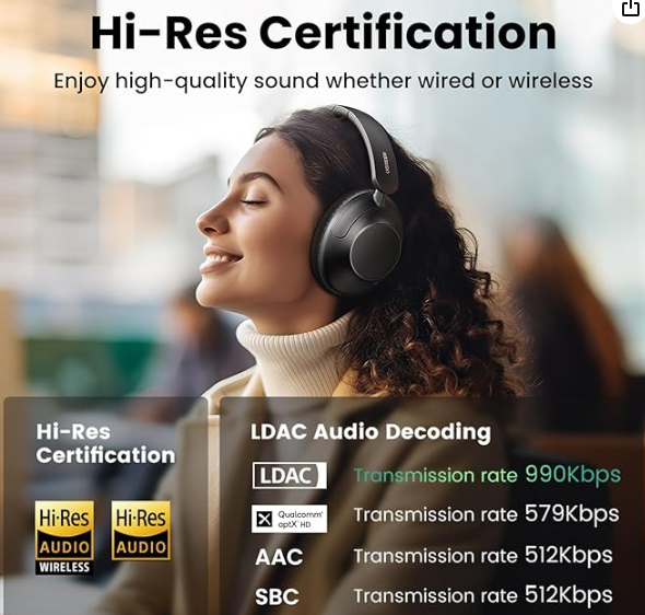 Son haute résolution, audio sans perte : certifié par haute résolution (à la fois filaire et sans fil), le casque Bluetooth UGREEN HiTune Max5 reproduit des détails subtils entendus uniquement dans un studio d'enregistrement, dont la réponse en fréquence peut atteindre jusqu'à 40 kHz. Le codec LHDC fournit un streaming audio haute résolution avec une faible latence, et un algorithme AI avancé améliorant le punch des basses, vous offrant une qualité sonore de qualité audiophile.