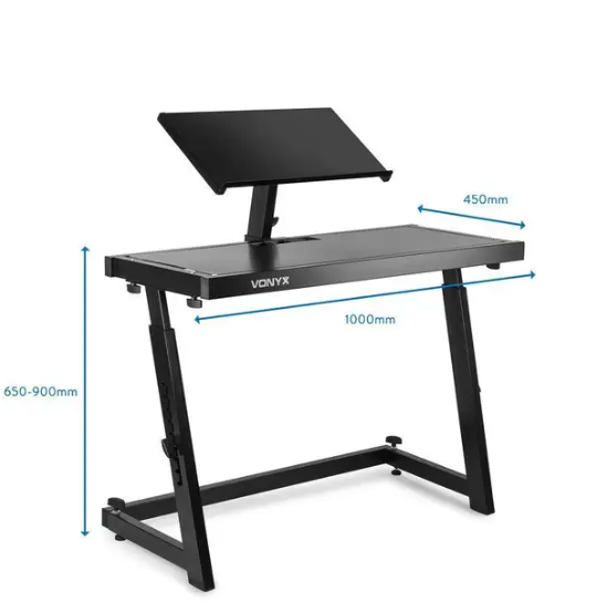Ce mobilier pour DJ s’adapte à vos besoins : vous pouvez régler sa hauteur jusqu’à 90 cm. Sa plateforme supérieure est aussi inclinable et réglable en hauteur pour poser le plus souvent votre ordinateur ou un autre équipement. C’est à vous de choisir !